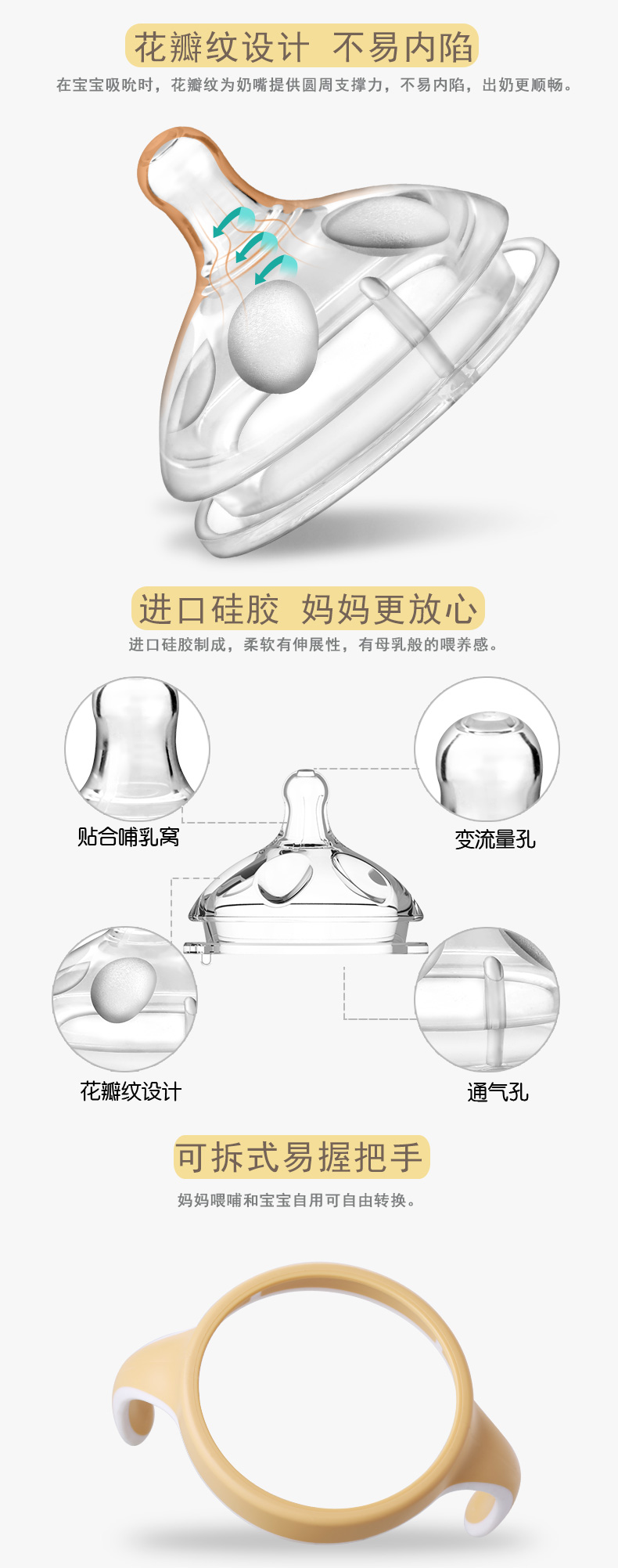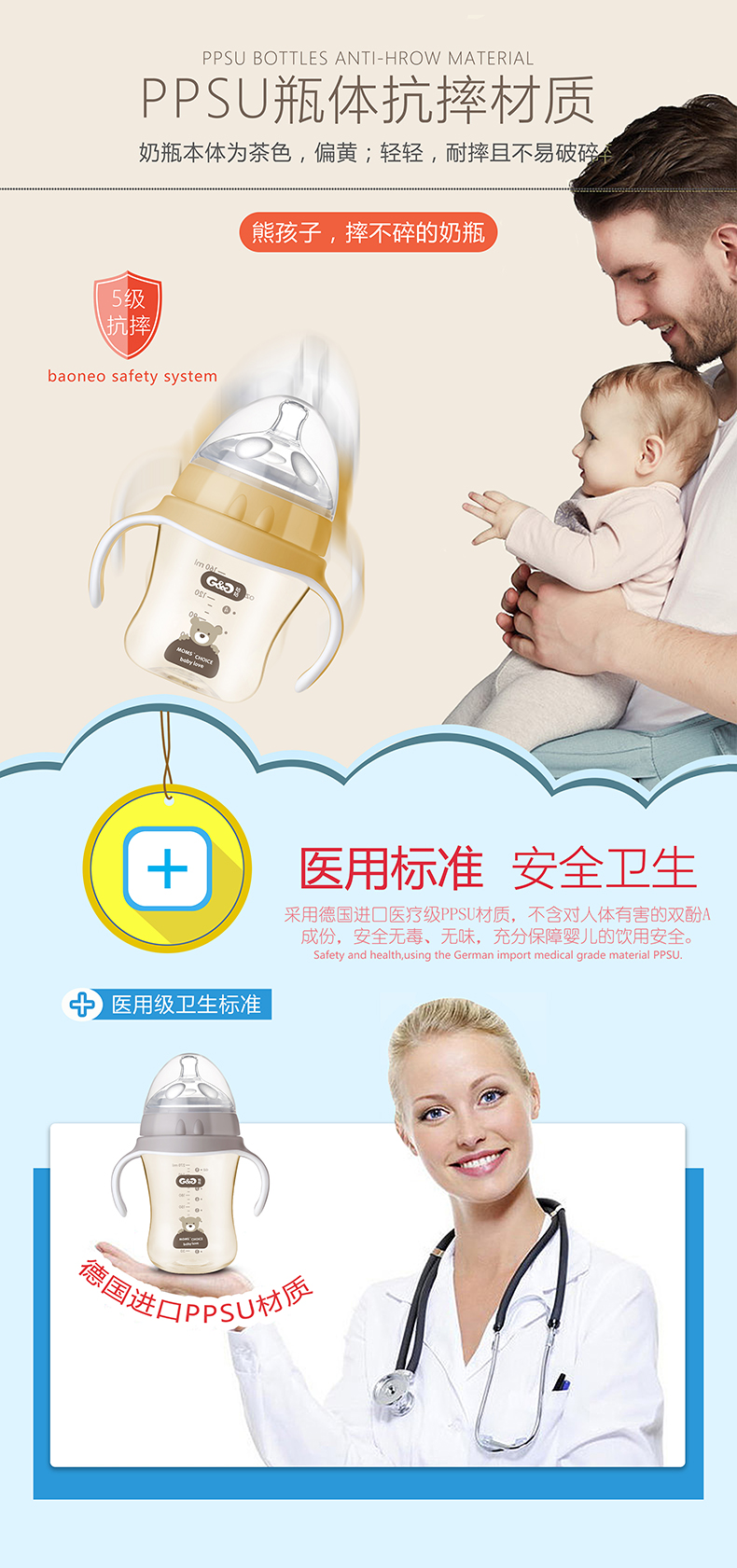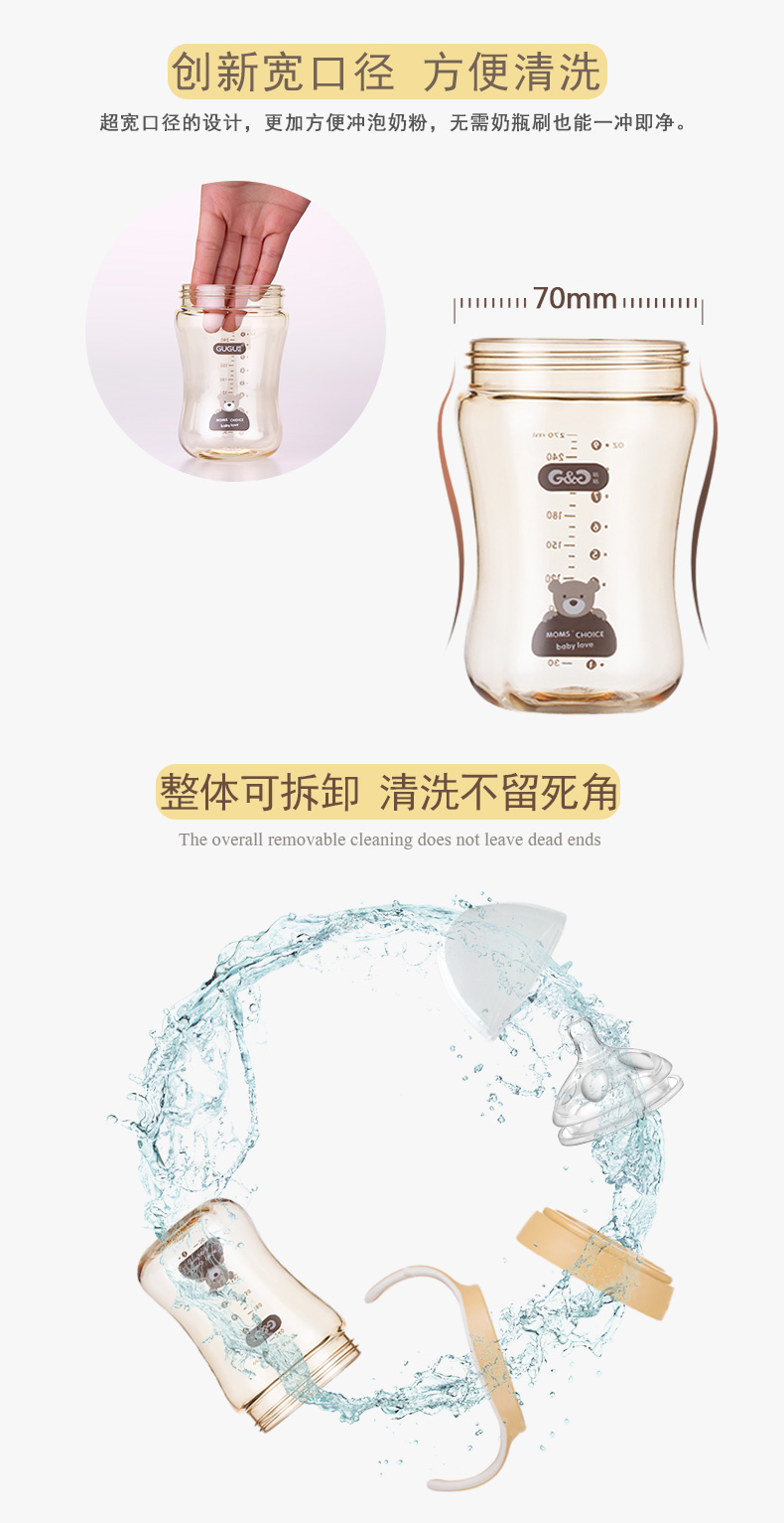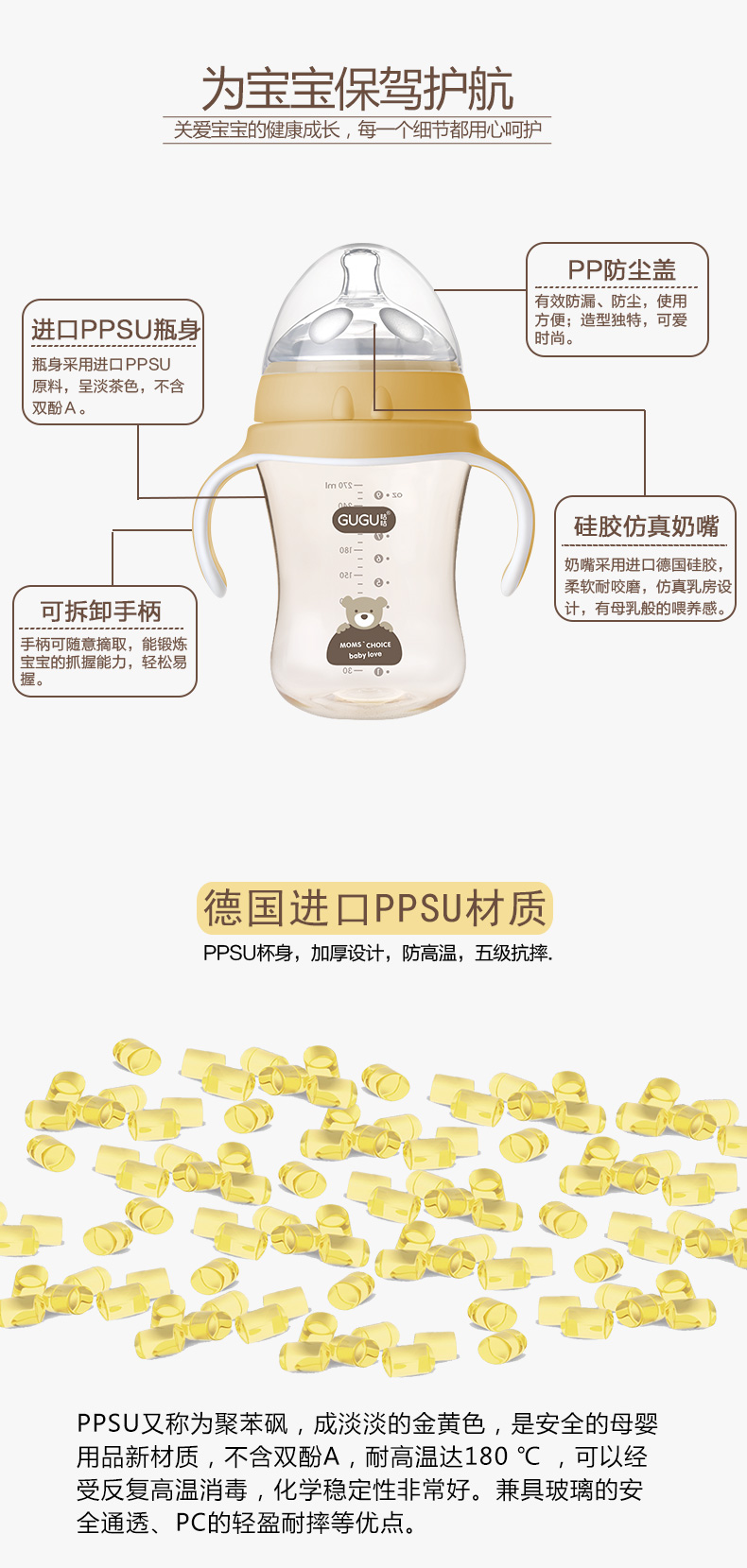 顏 色:都市灰/典雅黃/簡約白      材 質:PPSU(奶瓶瓶身呈淡茶色)