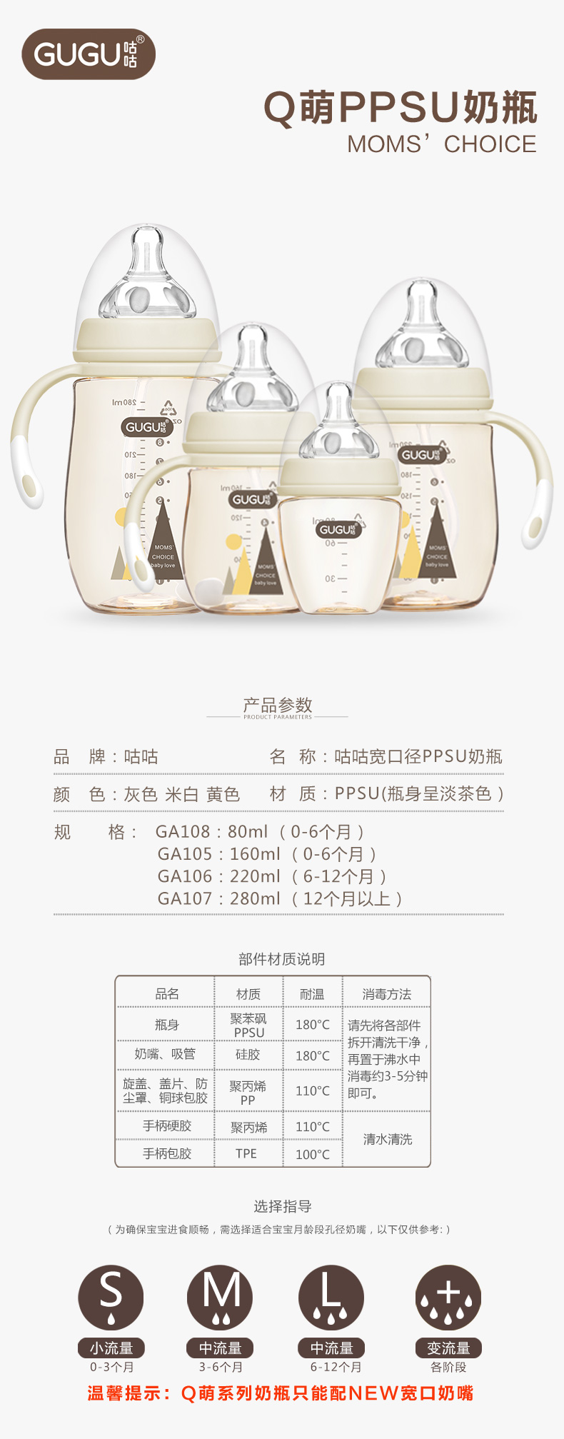 顏 色:都市灰/典雅黃/簡約白      材 質:PPSU(奶瓶瓶身呈淡茶色)
